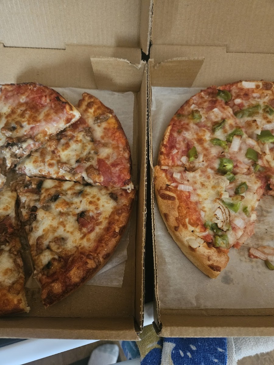 Sorry in advance for taking a picture of a half eaten pizza we were obviously hungry Was not expecting the food to be as good as it was. It was delicious! I got a large pizza and a small order of buffalo chicken tenders. We ate every last bite. My only complaint is that the blue cheese was a dressing and I didn’t end up using it. Seldom do you receive blue cheese dressing from a bottle with an order of buff tenders. I hope next time I will get actual blue cheese sauce. I can’t wait to eat here again. I’m hopeful the other menu items will be just as good. Pizza was perfect in every way, chicken was of great quality. Owner was very friendly.
